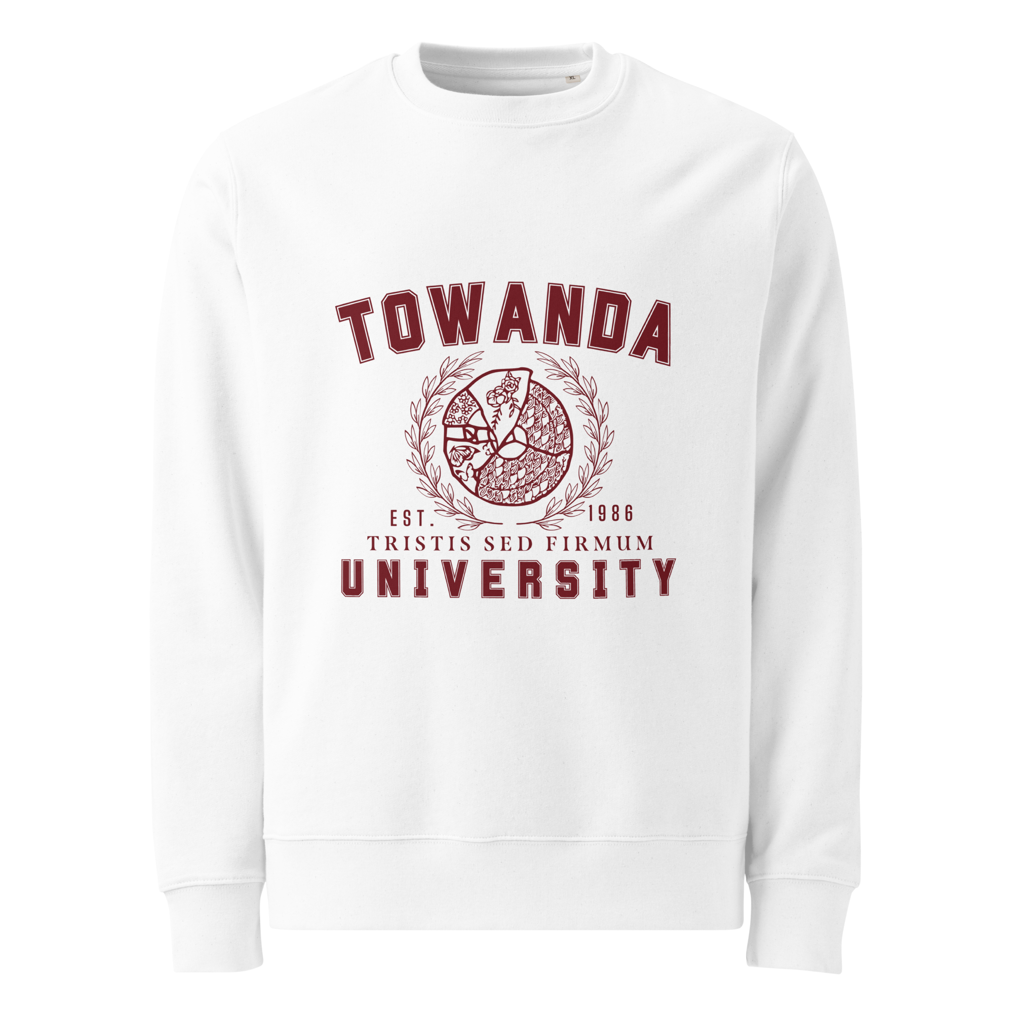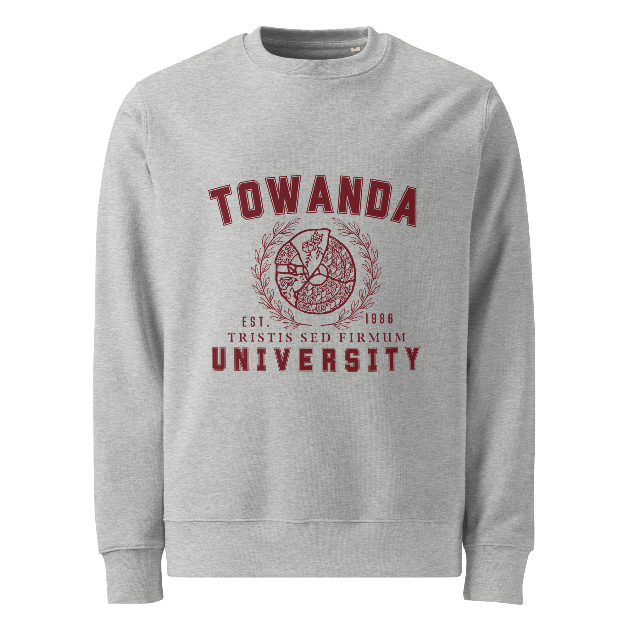 My alma mater will always be Towanda U—motto “TRISTIS SED FIRMUM”: sad but stable, baby. Eeco-friendly sweatshirt, made from organic cotton and recycled polyester. Relaxed fit.